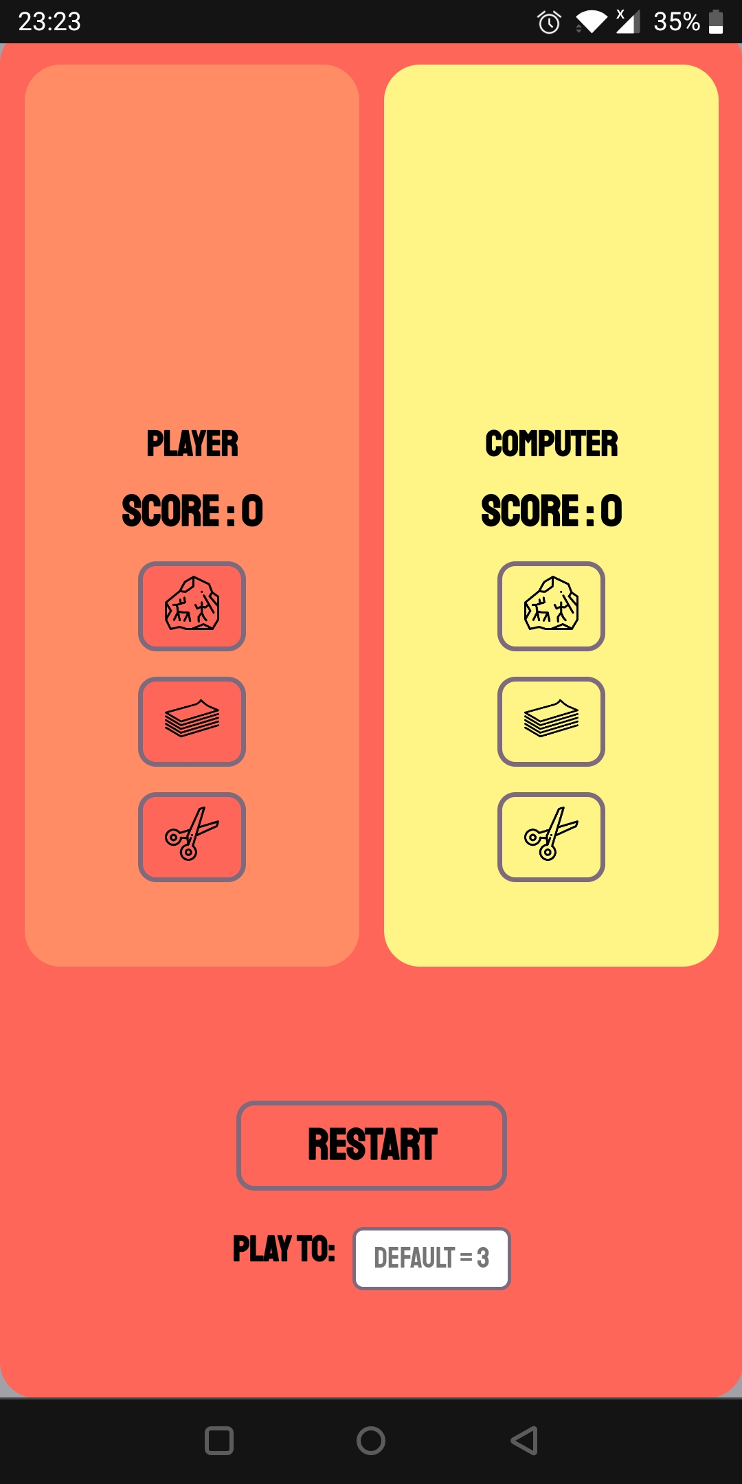 Game of Rock, Paper, Scissors against the computer. By default it's played to 3, it can be played to 10 wins max. Additional features: Responsive Web Design